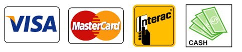 Note: “We accept payments via Interac, Visa, MasterCard, or Cash.”